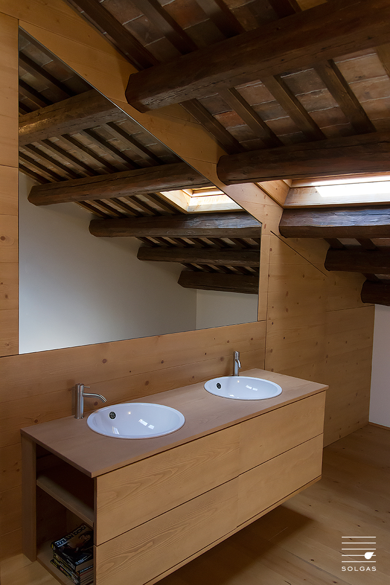 • Descrizione: Questo spazio è stato ricavato nel sottotetto attiguo alla camera padronale. La combinazione tra legno e laminam grigio rende questo ambiente moderno e morbido allo stesso tempo.